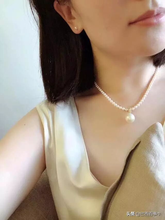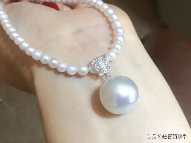 4-5mm海水akoya项链+18K金蕾丝钻石配件+澳白14-15mm,正圆极微瑕。有5条现货。