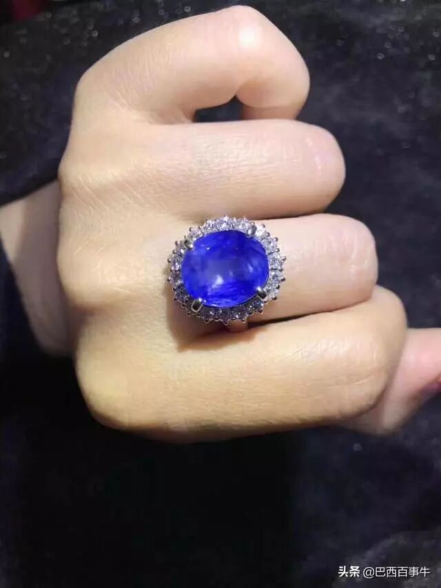 无烧无烧蓝宝石戒指,基本很干净,看不到棉,带GIA证书