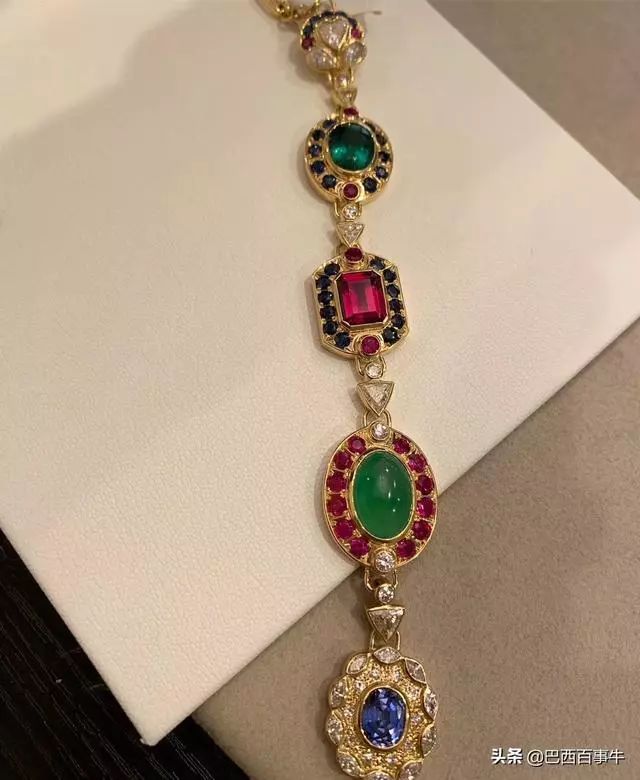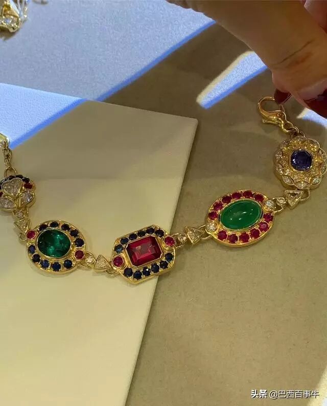 杜嘉班纳风 彩宝钻石手链 卢比来 绿碧玺 翡翠蛋面 蓝宝石~ 精彩绝伦 三本GRS!