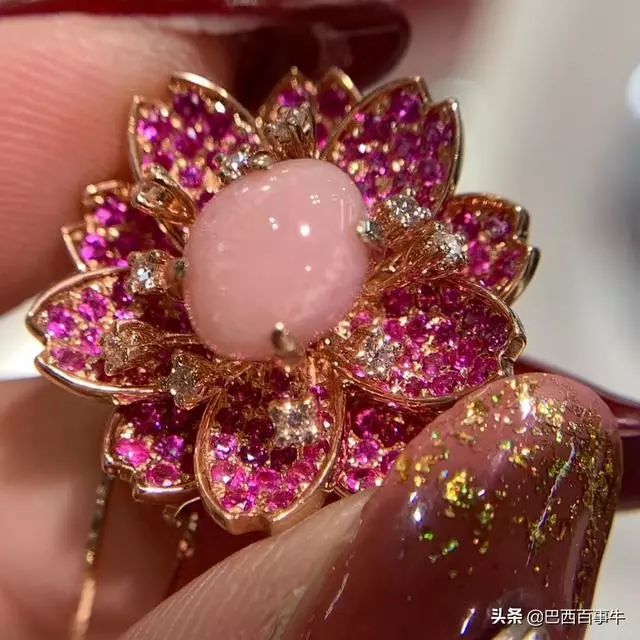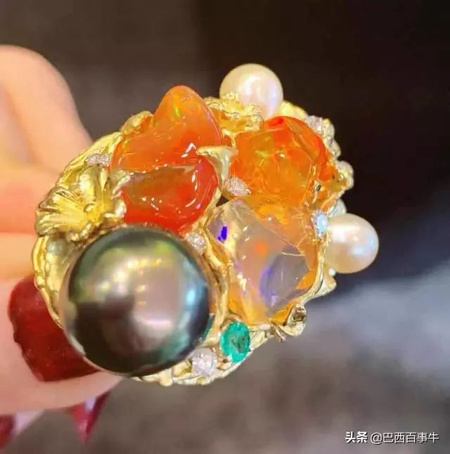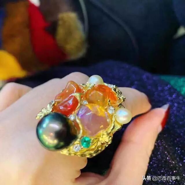 巧妙结合了几种宝石 欧泊堆叠的颜色造型很有层次 孔雀绿是点睛之笔!圈号可改~