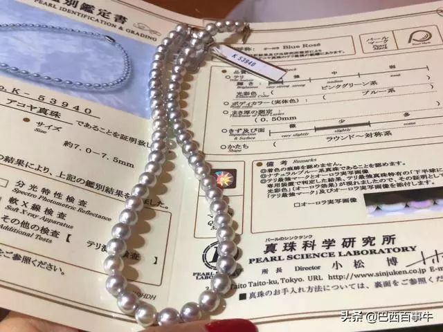 7-7.5mm正圆强光银蓝色日本akoya珍珠项链!天然色无优化!优雅的蓝玫瑰,真科研blue rose大证书!真心美!只有一条现货