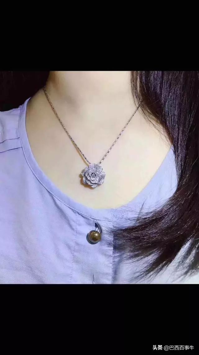 钻石玫瑰花,好大一朵,吊坠胸针两用款,钻石很白很闪,沉甸甸的一枚,质感超好