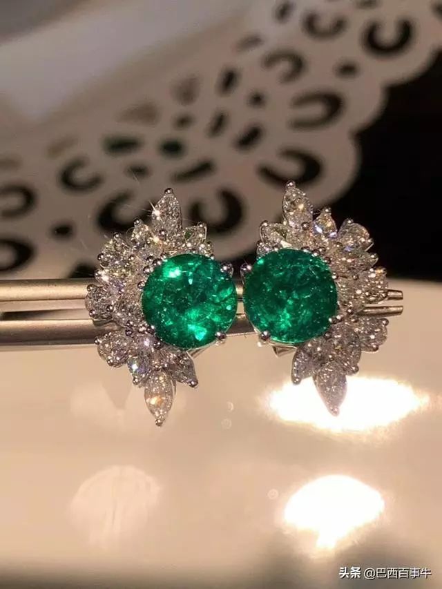 新出一对祖母绿耳钉主石,颜色vvg微油以上,全反火,净度晶体很不错,18k白金配钻石豪华镶嵌,上耳很漂亮