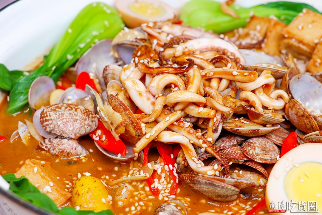 鱿鱼、花甲、青菜、鸡蛋、木耳