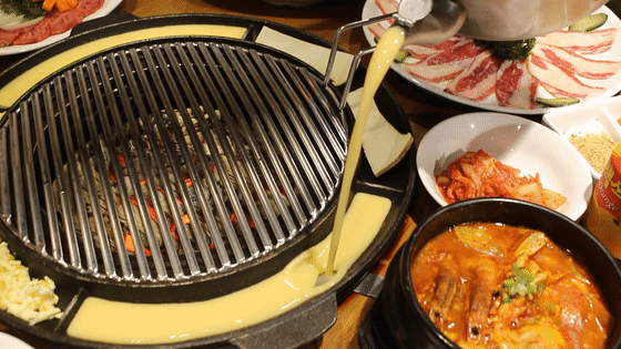 釜山火炉烤肉使用的炭均是菊花炭,无毒无味少烟,是烤肉的上好的木炭,健康安全环保,而且吃完烤肉身上不会有味道,这和别的烤肉就可以看出来有多大的差别。烤盘旁边芝士玉米,鸡蛋羹和杏鲍菇,不仅美味还可以无限续加。