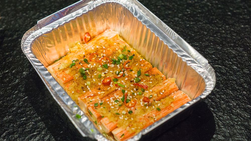 只吃过火锅里的蟹柳,像这样烧烤的蟹柳还是第一次吃,表皮烤至微焦,上面还覆盖一层蒜蓉,口感软糯鲜嫩,十分满足!