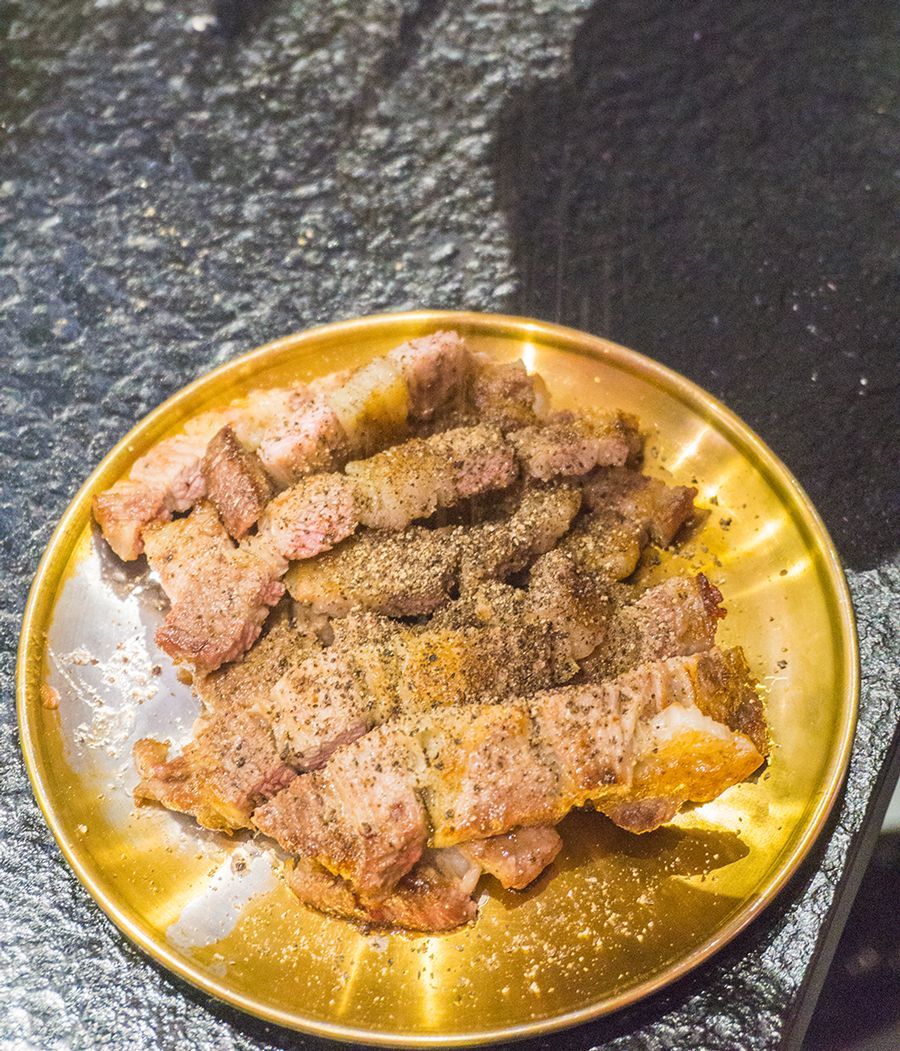 古法厚切牛胸肉烤制8成熟时口感最佳,肥肉和瘦肉竟排列得如此整齐,一看就是在挑食材上花了大工夫。