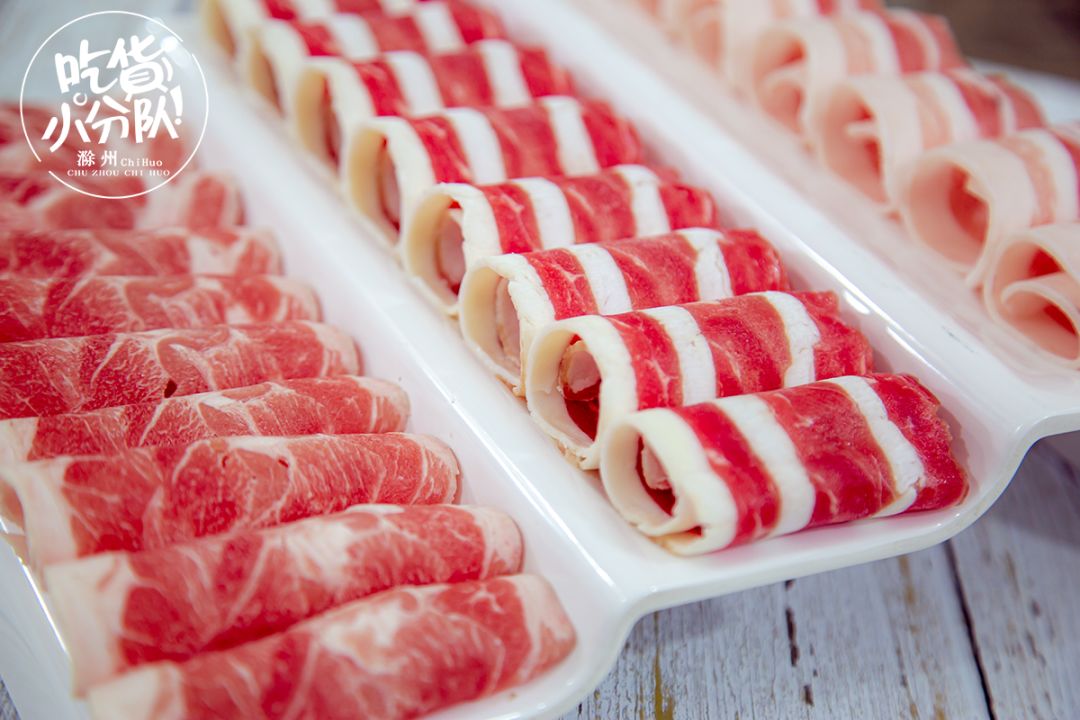 超厚实一块午餐肉,超级过瘾~可以直接生吃也可以放到锅中涮它个几分钟~配上精心小料,简直不要太爽!
