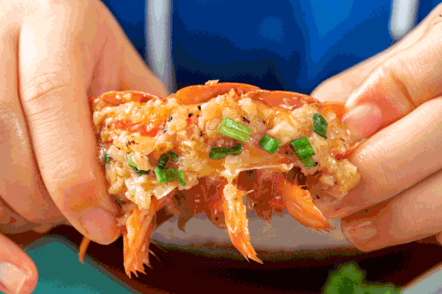豪迈的撕下一大块虾肉放进嘴里,用舌尖尽情感受虾肉的热度与柔软,每一口都是极致的味觉享受。