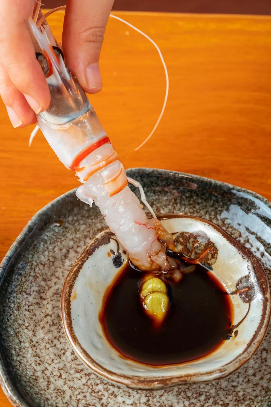 点上酱油入口,甜到连味蕾都跟着化开了~ 平时点一份都要好几十的牡丹虾刺身,秒回本!