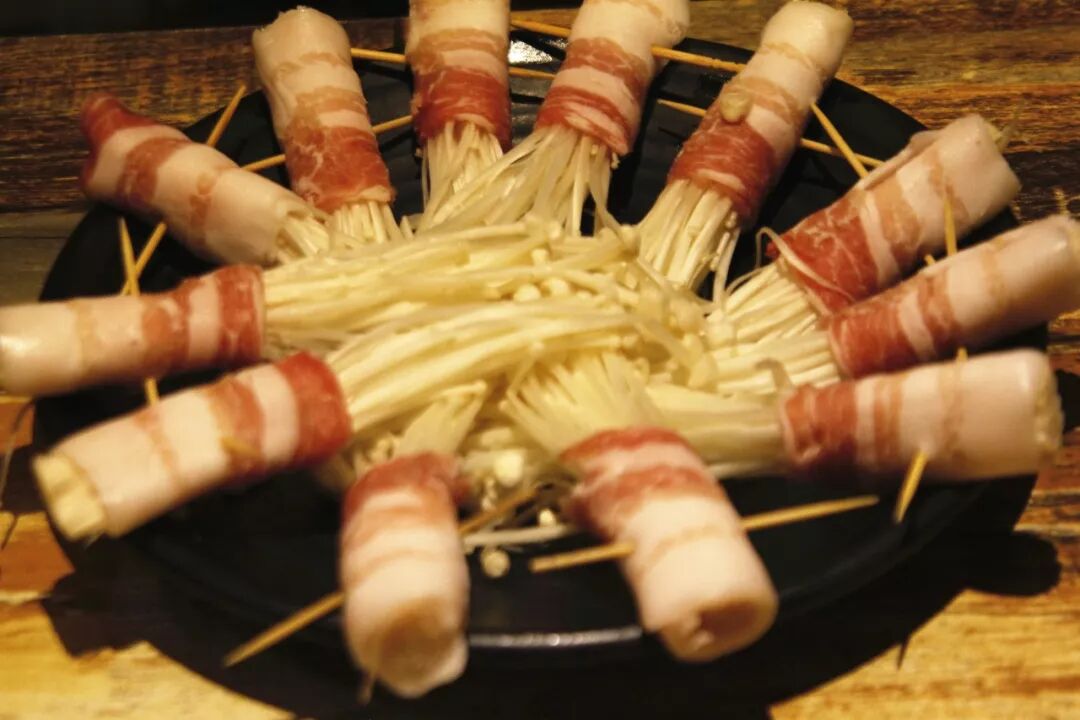 ▼肥瘦均匀的五花肉卷金针菇▼