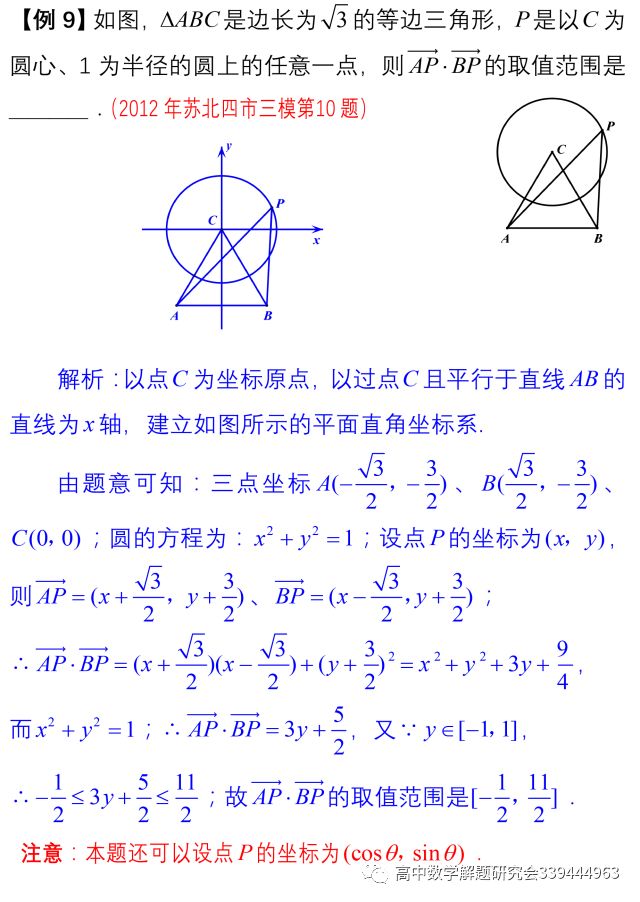 所谓坐标法就是建立适当的直角坐标系,将向量用坐标的形式表示出来,用函数与方程的思想求解。