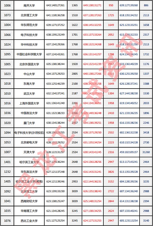 1、理工院校投档分数说明:小数点后一至三位为数学成绩,四至六位为外语成绩,七至九位为理科综合成绩。