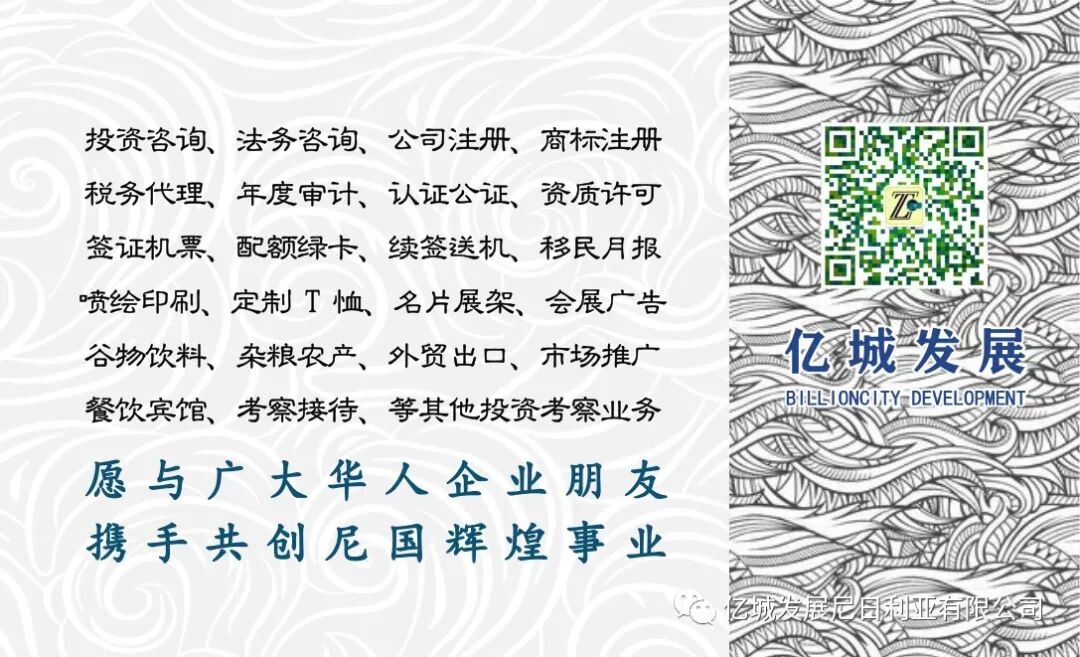 亿城发展愿与广大华人企业朋友携手共创尼国辉煌事业!