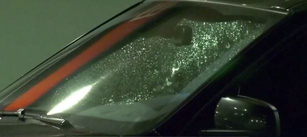 被袭击的SUV是黑色宝马,后来停在了在阿伯茨福德医院门外,车胎爆裂,前排两侧车窗和挡风玻璃也碎了。