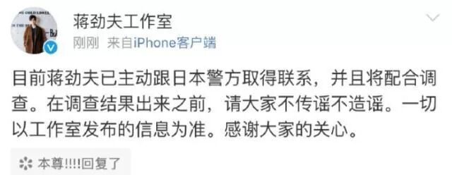 昨天说到蒋劲夫家暴的事情可能会判刑,今天蒋劲夫就跑去日本警察局自首了,工作室也认证,不过说得挺委婉,之后戴手铐被抓的照片也被拍。