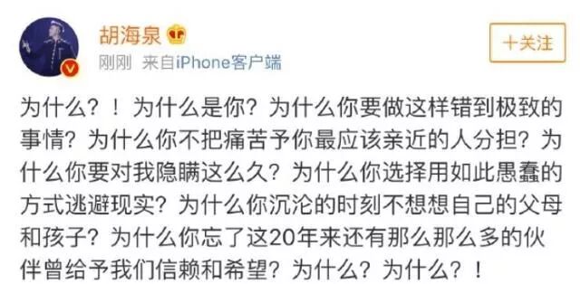 娱乐圈这种情况出现的太多了,看起来关系很好的明星,只要一方出事,另一方马上把自己撇得干干净净的,似乎是向外界证明自己和他们不是一路人,其实娱乐圈走得近的人,都是相似的,胡海泉的负面也不少,这个时候发这条微博,只是因为陈羽凡进去了,他还要继续在娱乐圈发展,不能让陈羽凡耽误了自己的事业,他这个想法是没什么错的,毕竟在这个圈子自己的利益才是最高的,只是胡海泉的这条微博发的不合时宜,这个时候应该安静闭麦比较好。