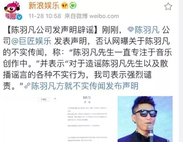 陈羽凡被坐实吸毒后,胡海泉赶忙发微博用了咆哮式的说话方式,言语中都表示自己对陈羽凡吸毒的事情完全不知情,说实在的,羽泉在一起已经这么多年了,胡海泉不可能一点也不知道,而且羽泉明天就要开演唱会了,工作室昨天突然称因为一些原因取消演唱会,门票都开始退了,说胡海泉不知道陈羽凡吸D,是不太可能的。