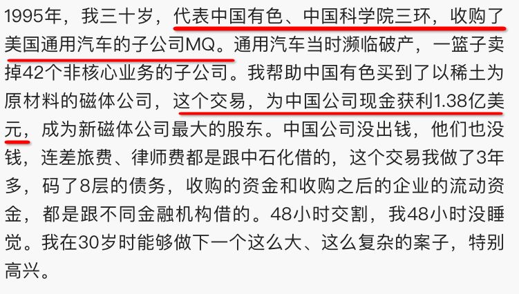 但30岁就代表中国有色、中国科学院三环收购美国濒临破产的通用汽车子公司MQ,并为中国公司获利1.38亿美元的俞渝,能。