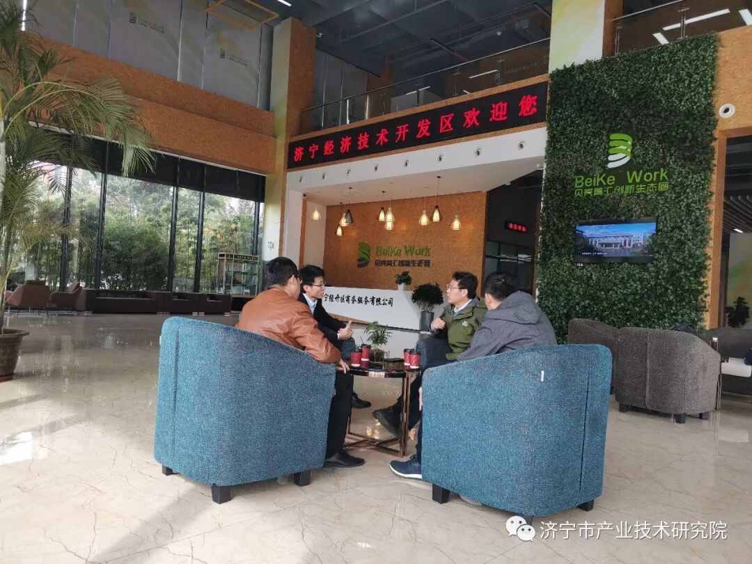 10月25日,市产研院院长王东升一行到济宁经开区对接交流工作,济宁经开区组织部副部长刘晓伟陪同。