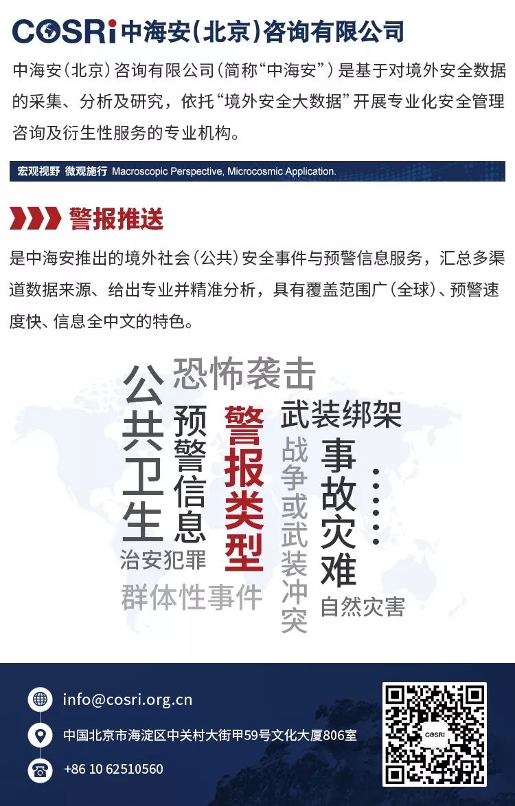 (中海安“警报推送”公开版,转载请注明,如需深入分析与咨询服务请与中海安联系。)
