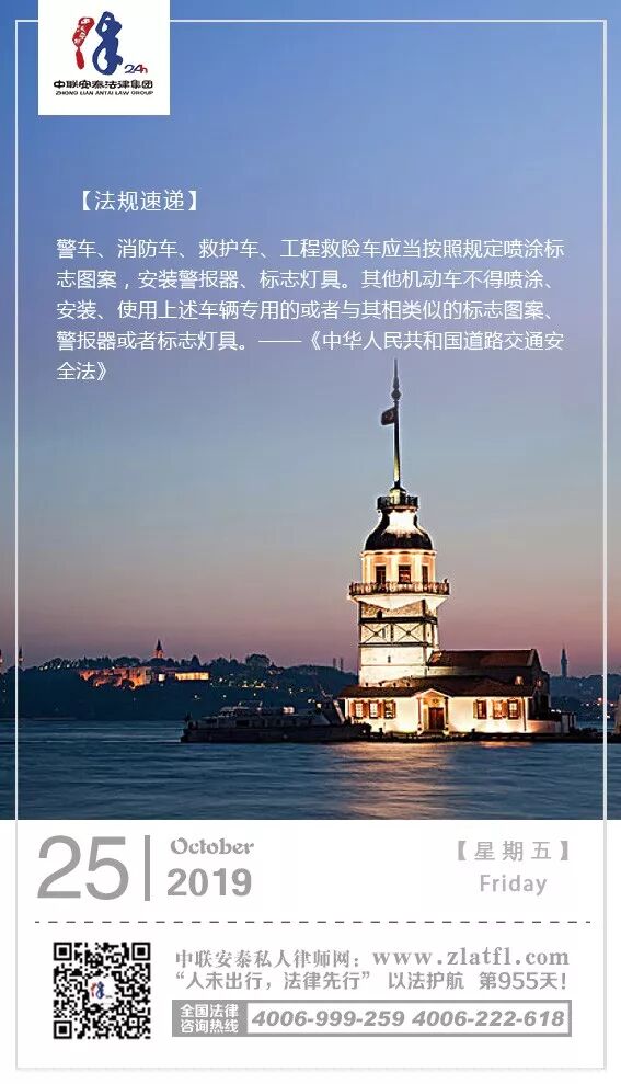 【法规速递】《中华人民共和国道路交通安全法》“警车、消防车、救护车、工程救险车应当按照规定喷涂标志图案,安装报警器、标志灯具”