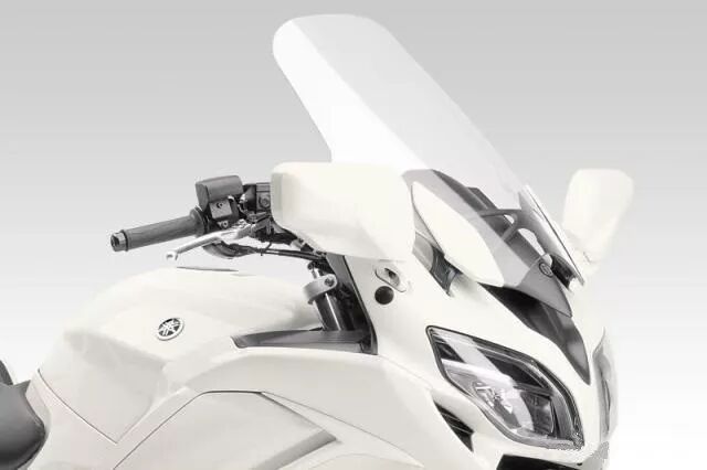 此外,FJR1300还配备有标准的预接线电气接头、警报器,扬声器、比民用版高20毫米的电动可调挡风玻璃。为了对警员提供必要的防护,该车还配有发动机防护装置、护脚板和后部防撞杆等。