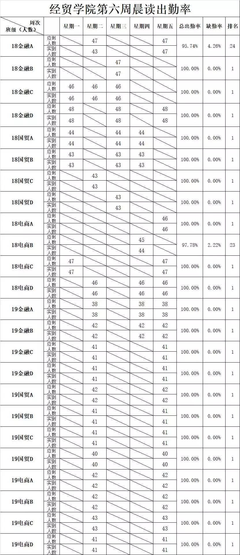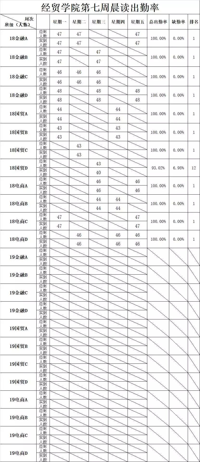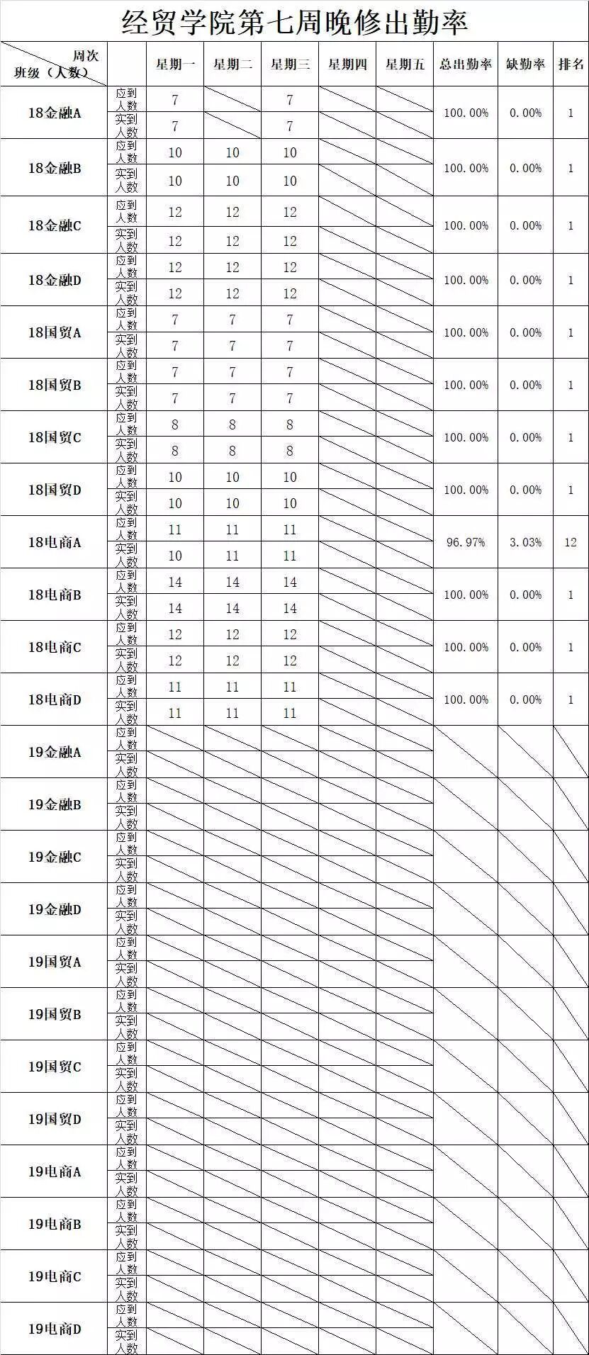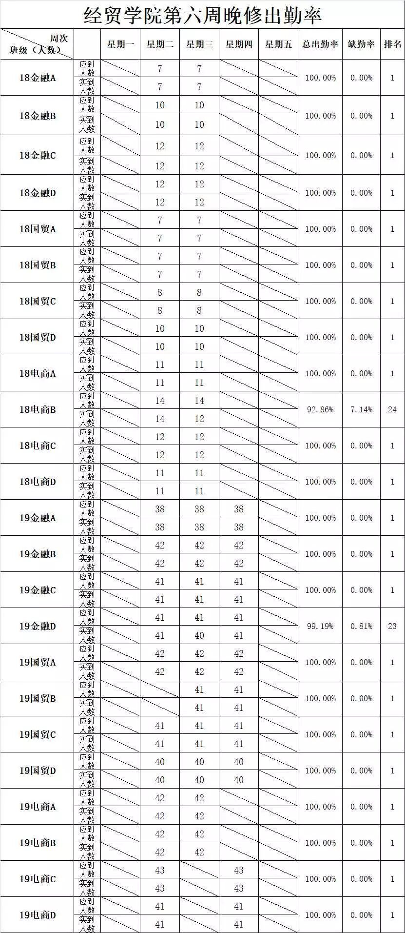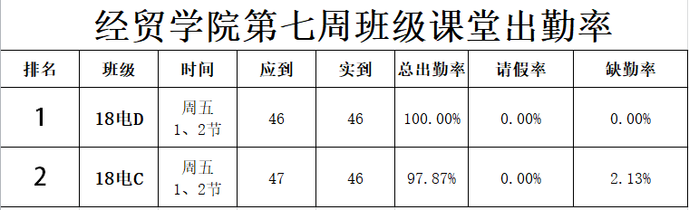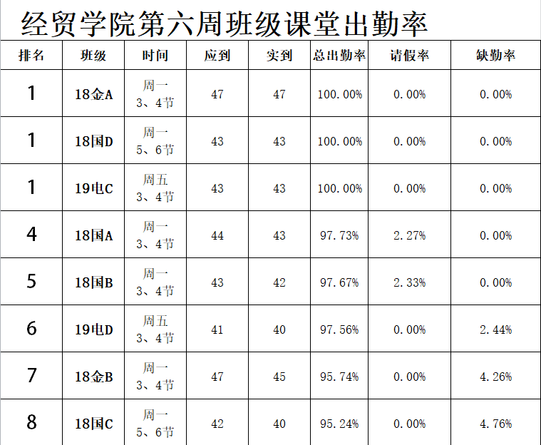 经贸学院第六至七周检查数据公示