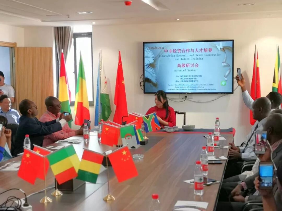 活动同期举行了由浙江工商大学中非经贸研究院、浙江工贸职业技术学院联合主办的“中非经贸合作与人才培养研讨会”,其中,赵浩兴教授提出中非经贸领域方便的合作思路和设想,希望研究院能够与非洲国家紧密联合,亲密协同,打造系统的经贸合作和人才培养体系。浙江工贸职业技术学院尹主任和施主任以跨境电子商务人才培养为着眼点,介绍了学院的师资力量和完善的跨境电商人才培养体系,希望在中非跨境电子商务崛起的时代,能够与非洲国家一起,为培养非洲跨境电商青年人才而共同努力。