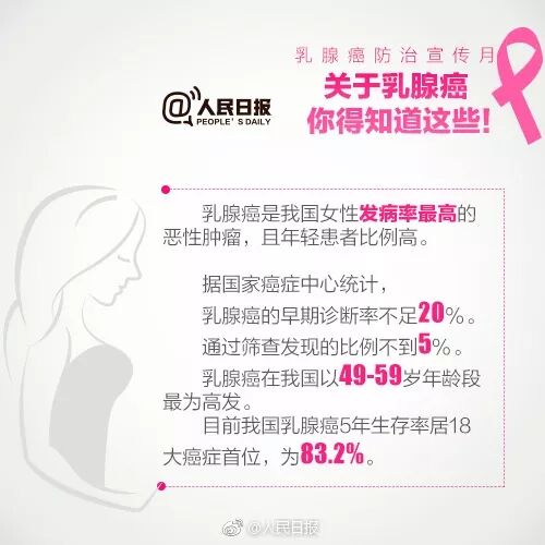 你知道吗?每年的10月是“世界乳腺癌防治月”, 每年10月18日是“防治乳腺癌宣传日”!目的是普及乳腺疾病知识,提高公众对于乳腺癌的知晓率,从而做到更好的防治。