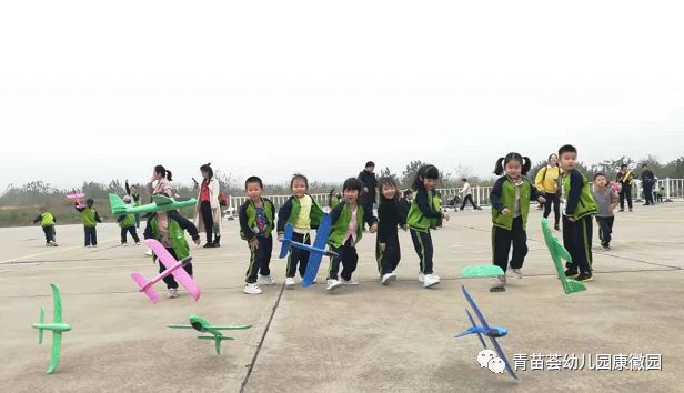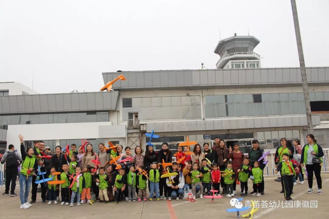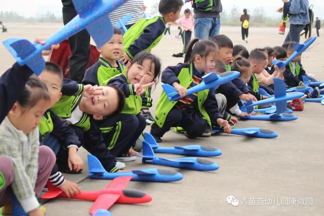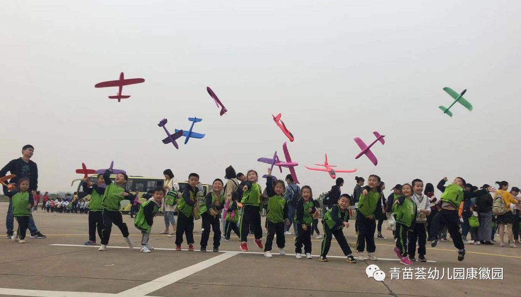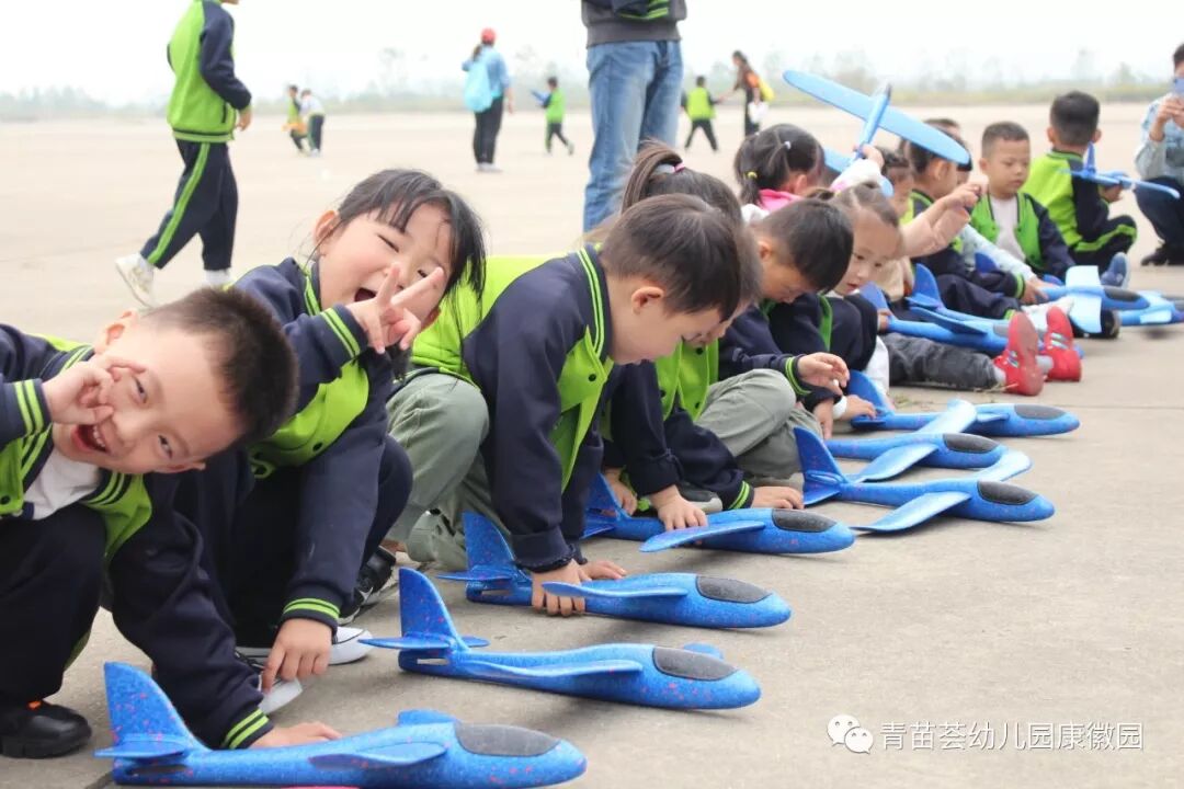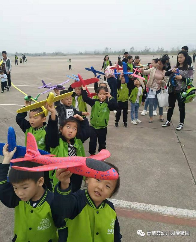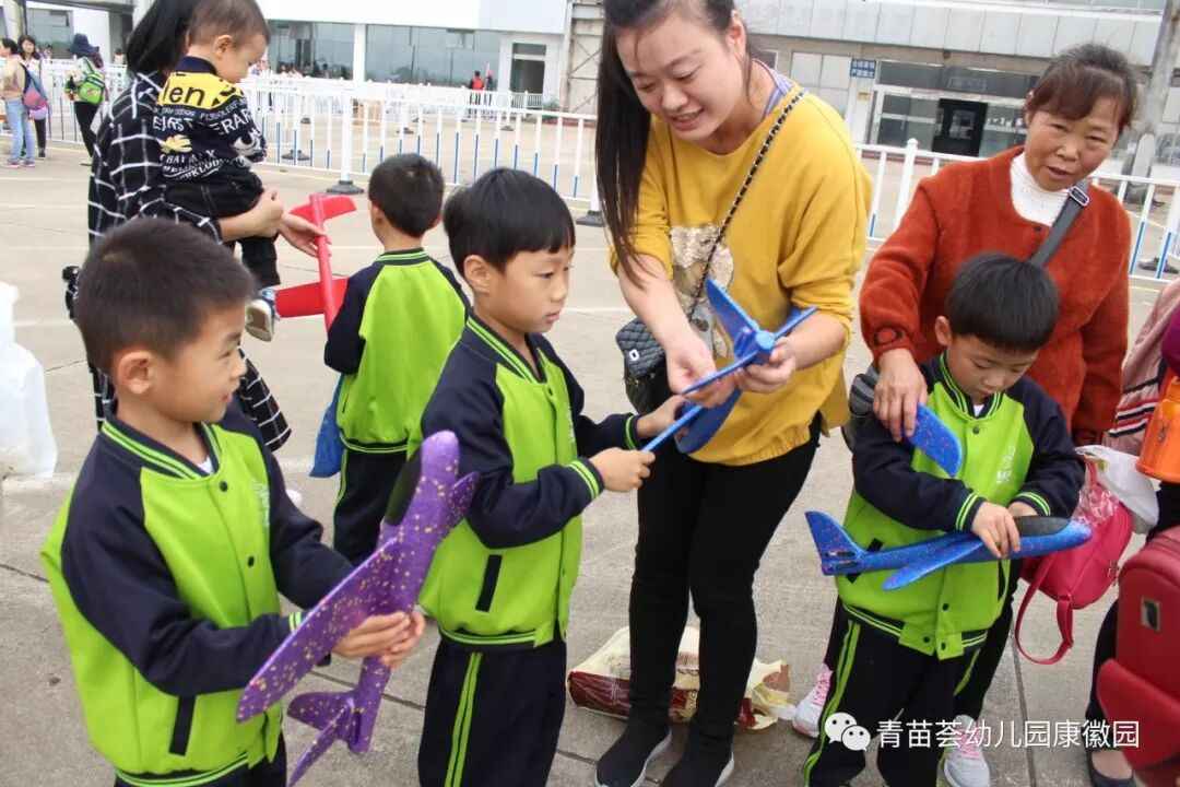 大巴车起航,康徽园庞大的队伍将分为15辆大巴车出发,小朋友们拿着幼儿准备的小点心,在欢歌笑语中前往第一亲子营地“飞机场”。