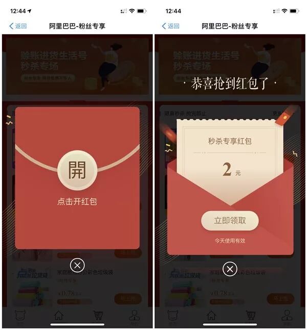 阿里巴巴领取粉丝专享2元红包0元购