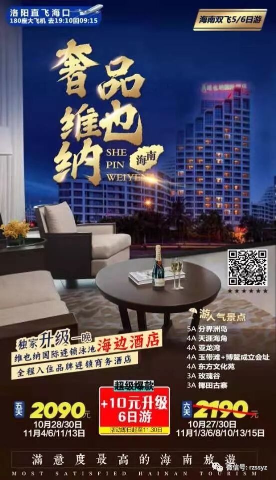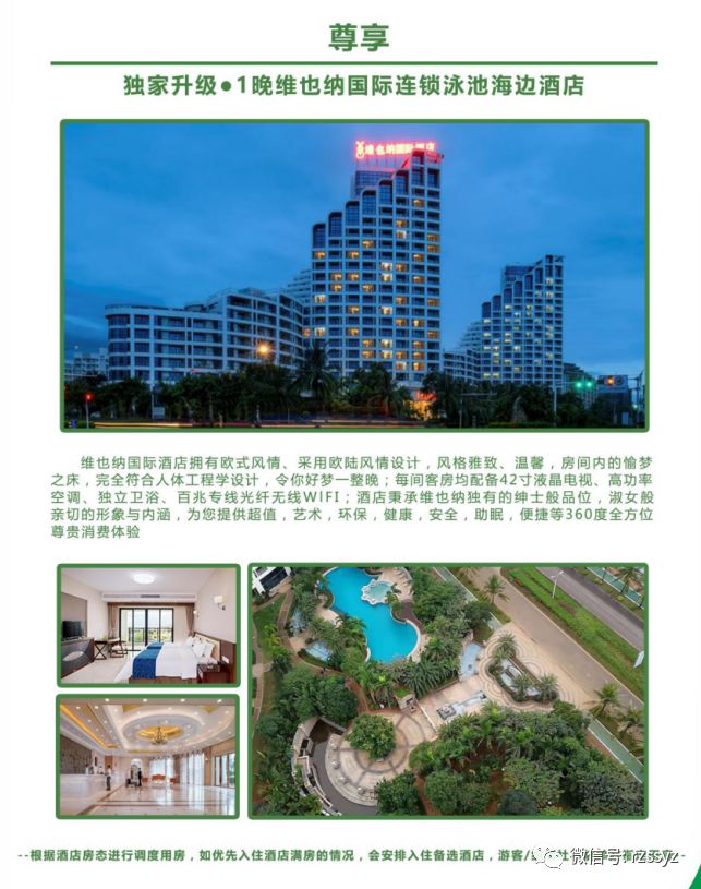 全程入住品牌连锁商务酒店,升级1晚维也纳国际连锁泳池海边酒店。