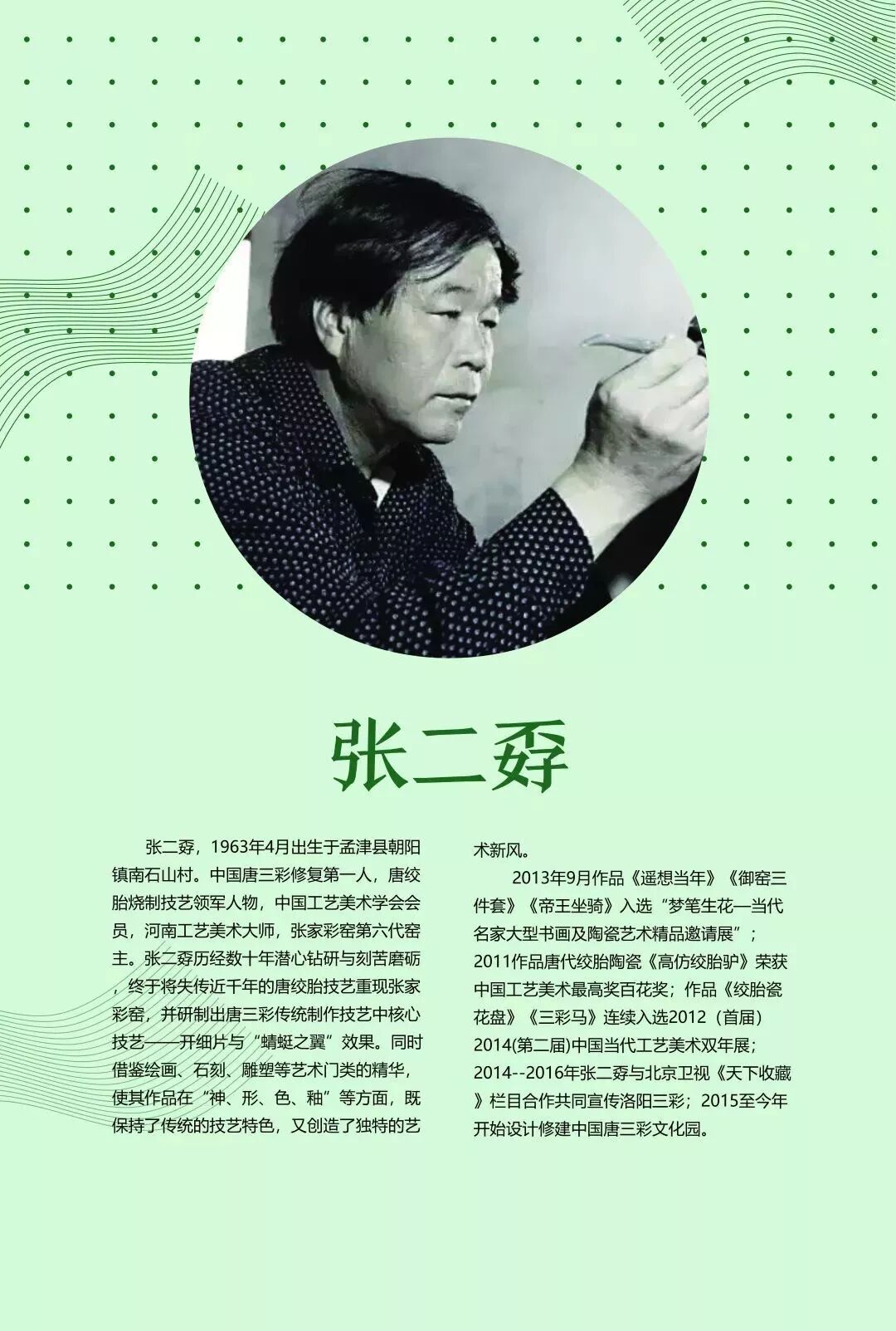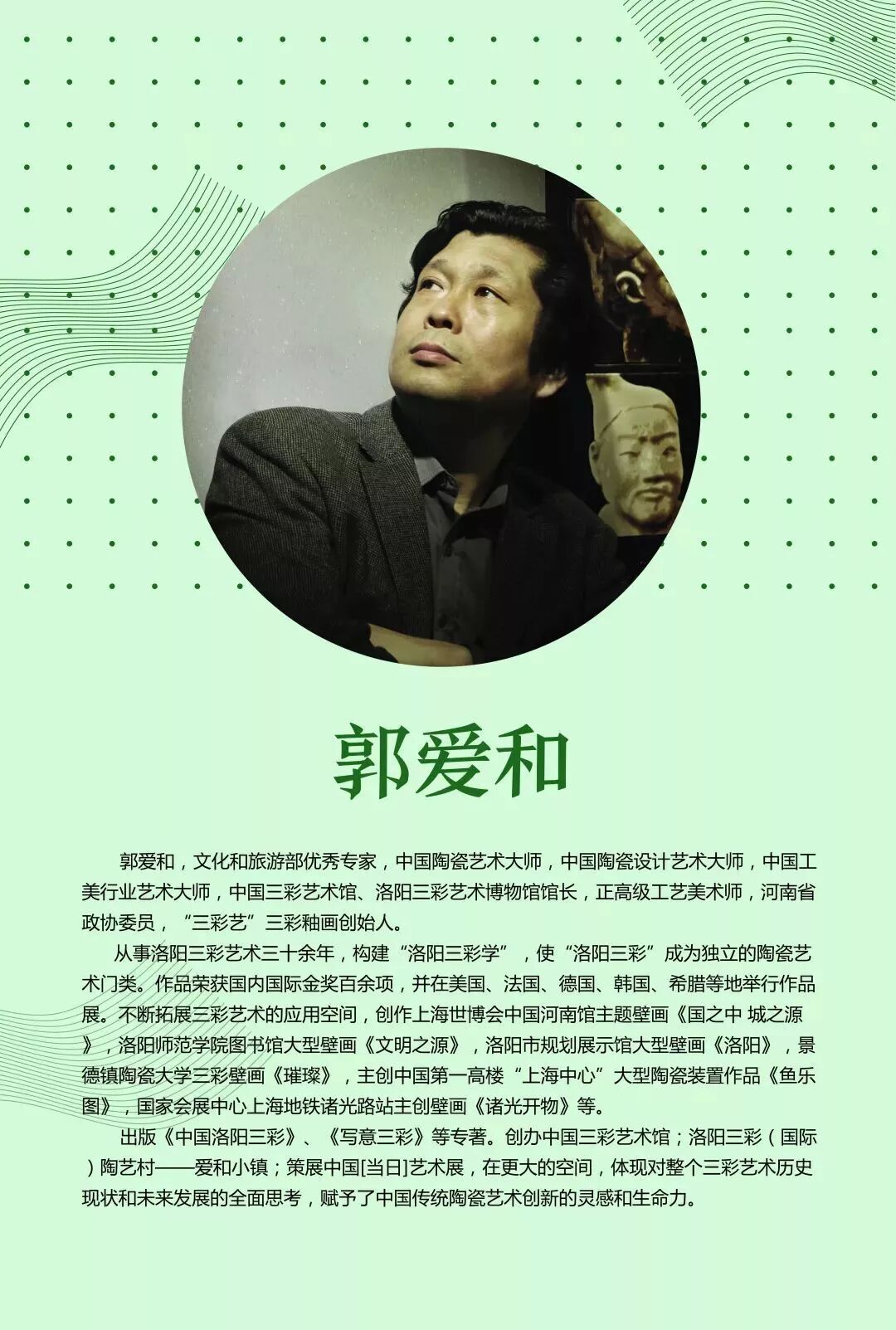 本次参展艺术家有唐三彩烧制技艺国家级非物质文化遗产传承人高水旺、张二孬等人;现代三彩艺术知名艺术家郭爱和、郭晓和、郑超男等人;跨界三彩艺术家景德镇陶瓷大学宁钢教授、中国工艺美术大师李有宇和范友祥先生、韩国美协主席赵康勋、美协副主席朴裕美等人。
