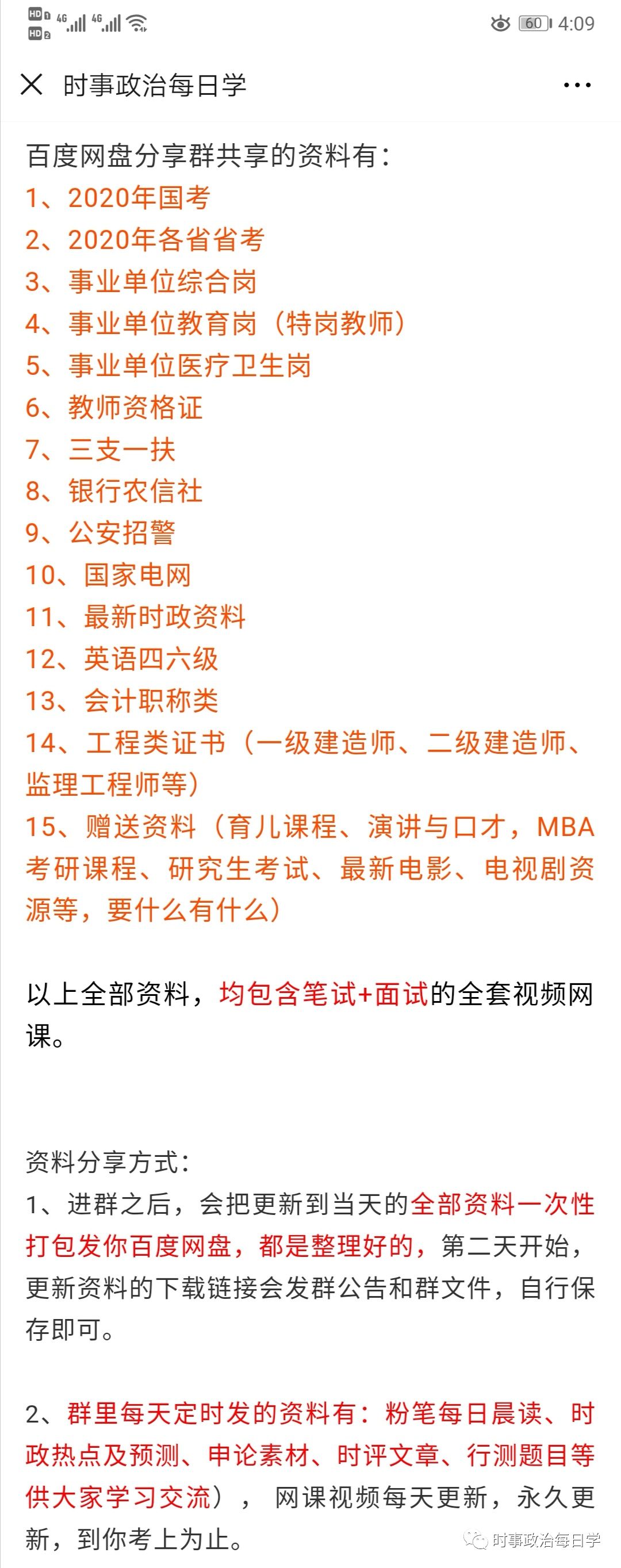 公考网课资料获取方法: