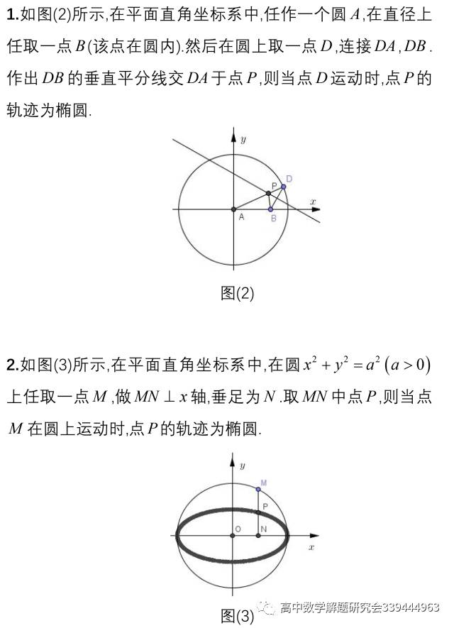 这是学生都非常熟悉的。但是在实际考试当中,试题往往不会直接给出这么明显的条件,而是经过一系列的包装(经常和圆结合,在圆中得到椭圆,本道试题其实给我们提供了一种从圆中得到椭圆的方法),这就要求我们要熟悉一些常见的从圆中得到椭圆的几何模型。