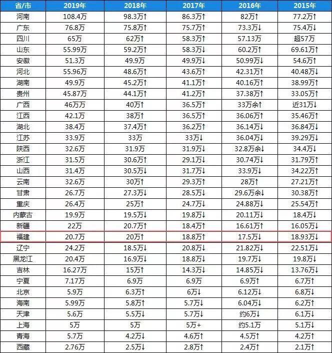 2019年高考报名人数为1031万,那么2020年高考报名人数将会有多少呢?这要到2019年高考报名结束后才会知道,现在是无法知道的。但是我国的高考人数高峰期已经结束,预计2020年高考人数会稍有下降。以下是历年高考报名人数及录取率情况,大家可以依此预测2020高考人数及录取趋势。历年高考报名人数及录取率
