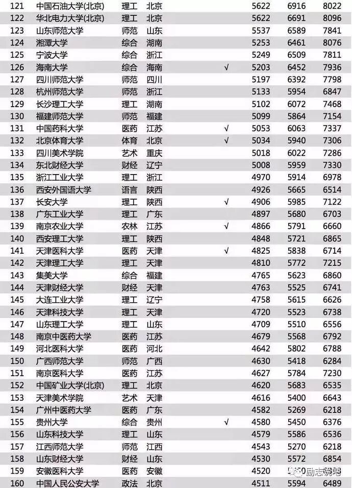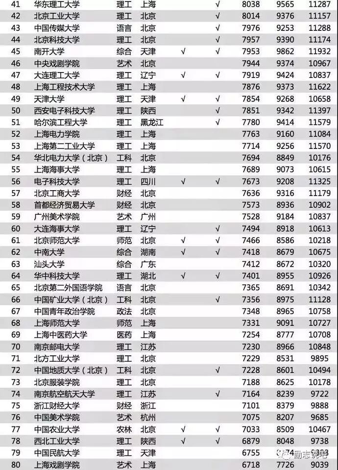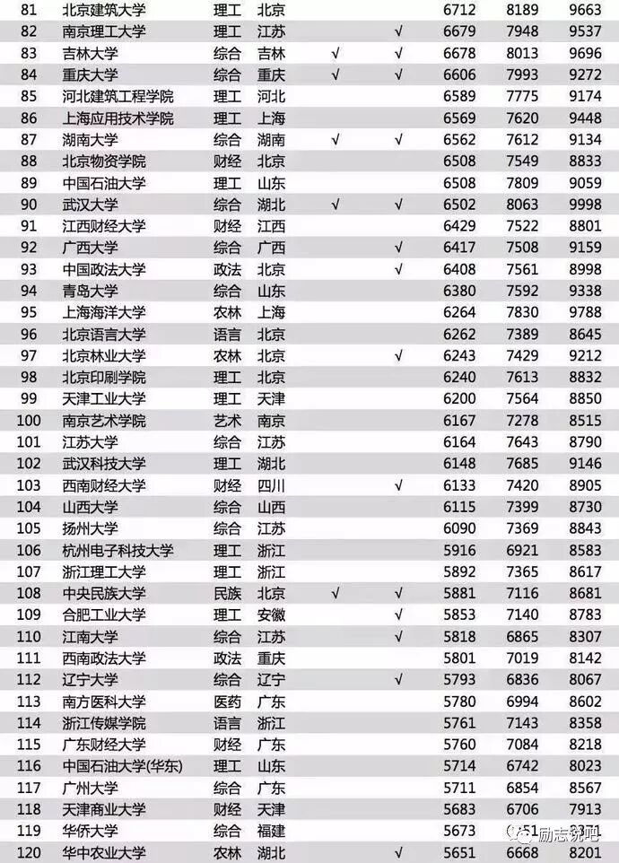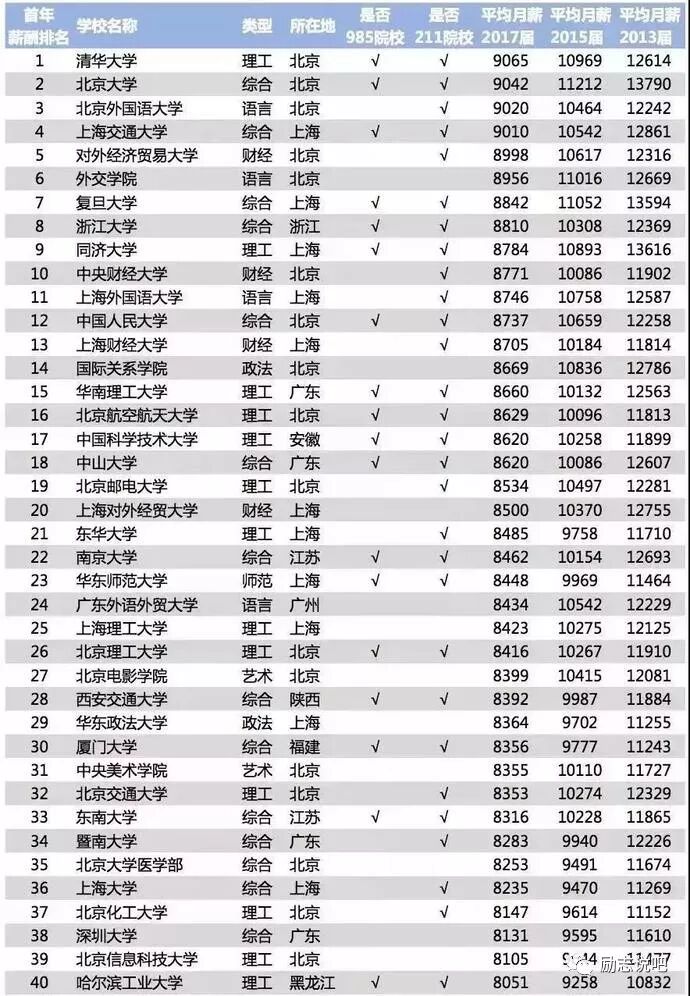 有些知名985高校如:武汉大学,湖南大学,重庆大学等排名比较靠后;但不能表明这些学校的毕业生工作不好,这样的工资水平在当地城市还是有很强竞争力的。
