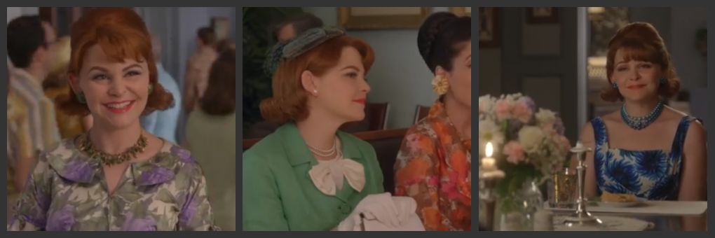 首先,被1963年,精致的中产家庭主妇贝丝安(Beth Ann),每日一款主打色的妆发裙闪闪亮瞎眼;