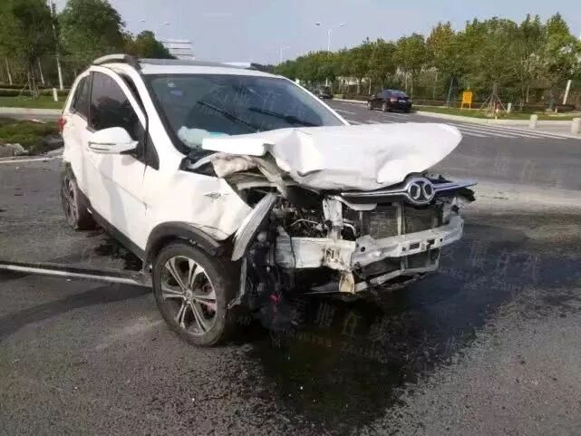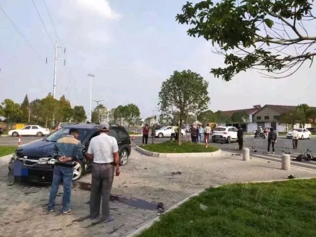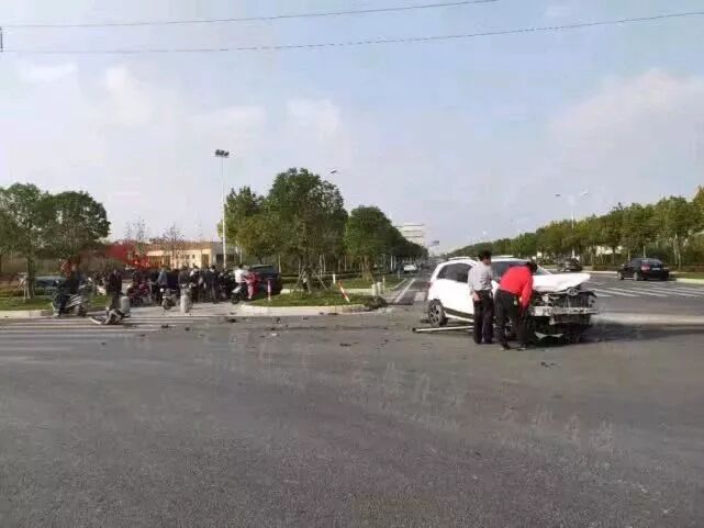 10月24日下午2点多,姜堰城东健身公园路口(城区天目路与东海北路交汇处),一辆白色轿车与一辆黑色轿车猛烈相撞……