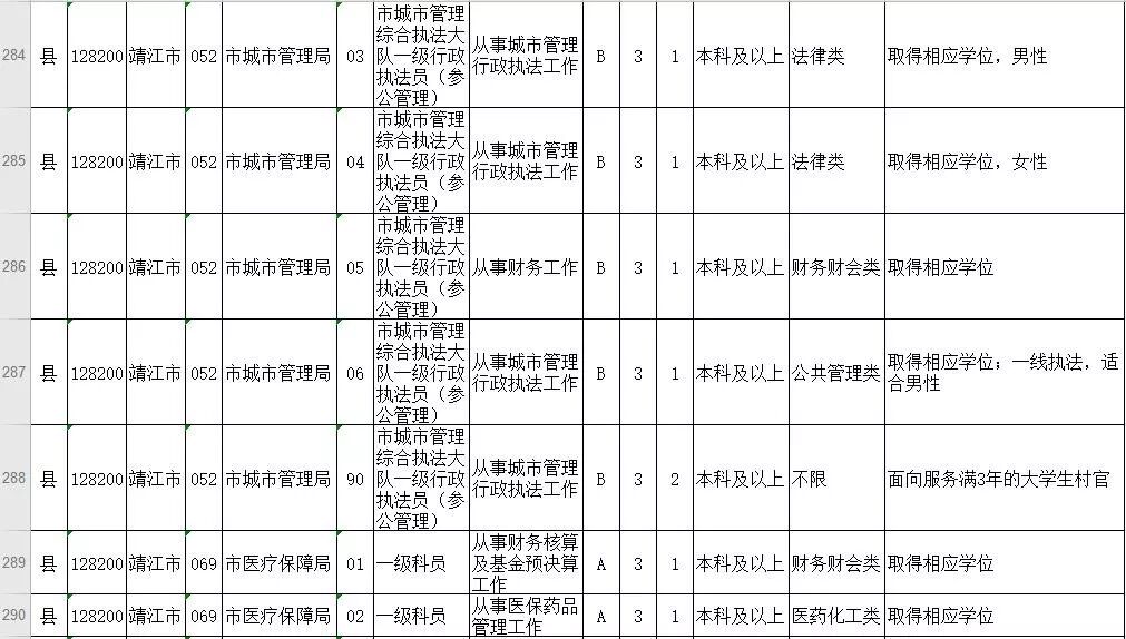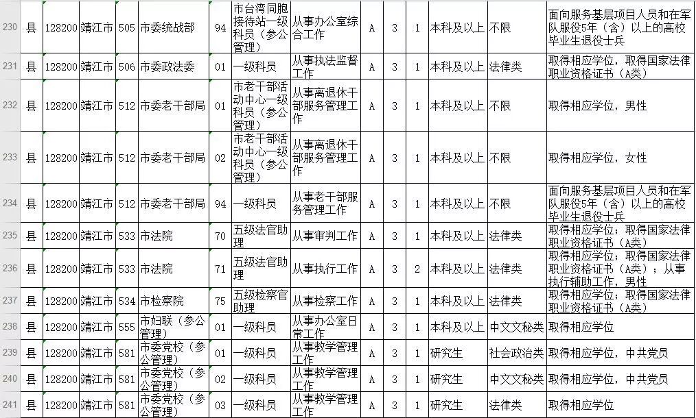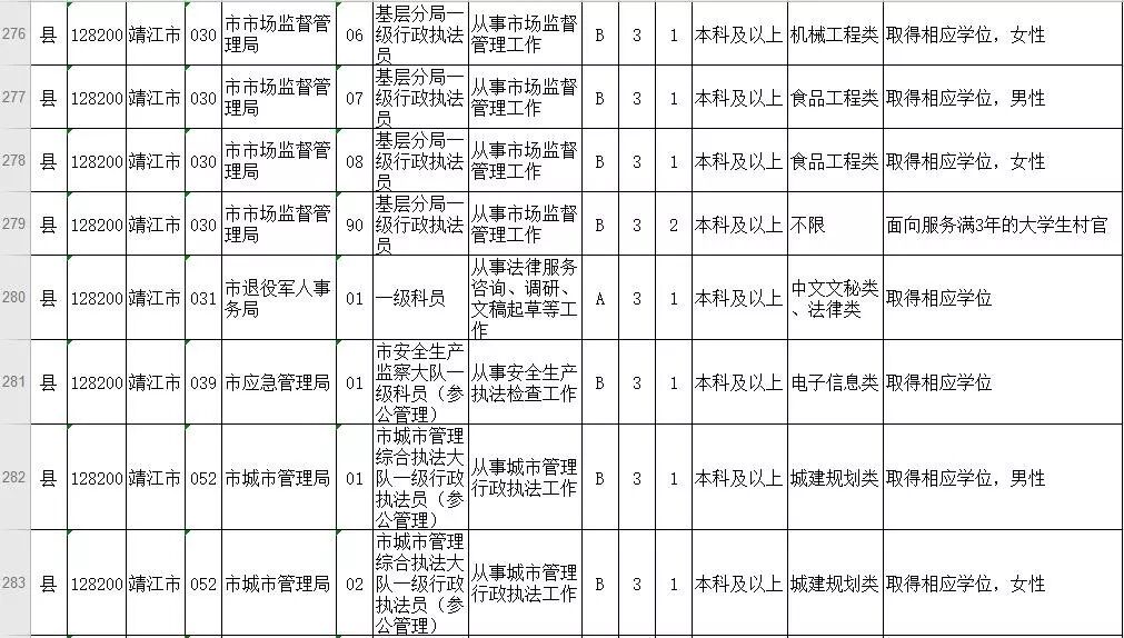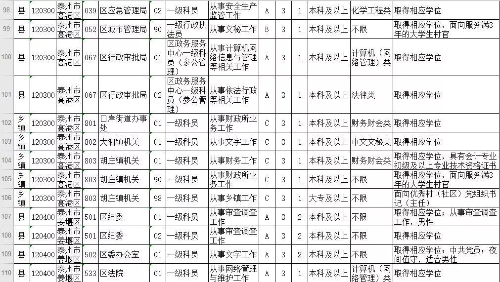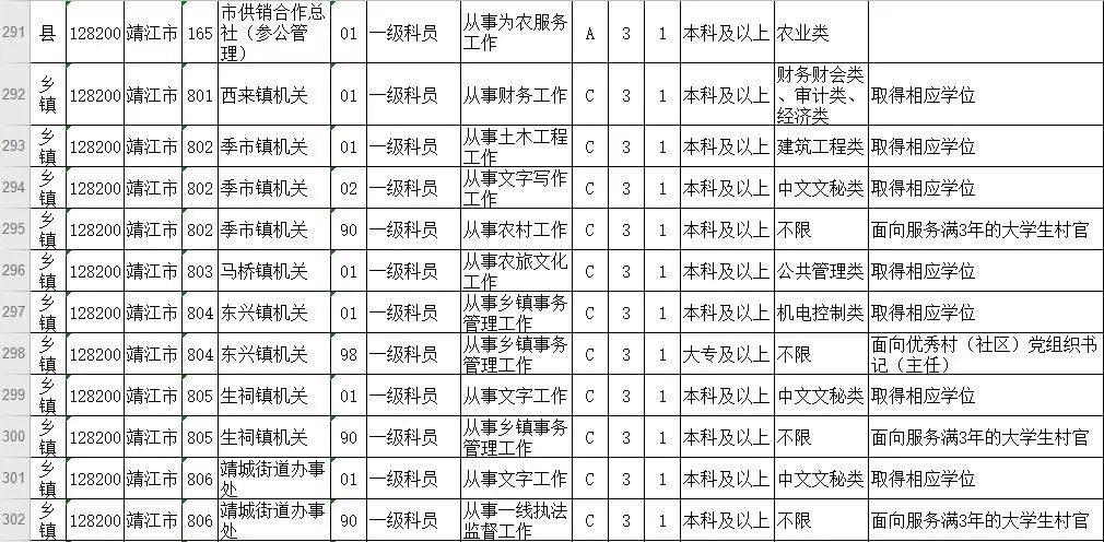 6.定向考录服务基层项目人员的职位(职位代码94~96),考录对象为:经我省项目办选拔派遣,服务期满且考核合格的“西部计划”(含外省选派的江苏生源“西部计划”)“苏北计划”“三支一扶计划”志愿者;我省设区市以上组织人社部门选派,报名时聘期已满、考核合格且未续聘的大学生村官;在军队服役5年(含)以上的我省户籍或生源的高校毕业生退役士兵。