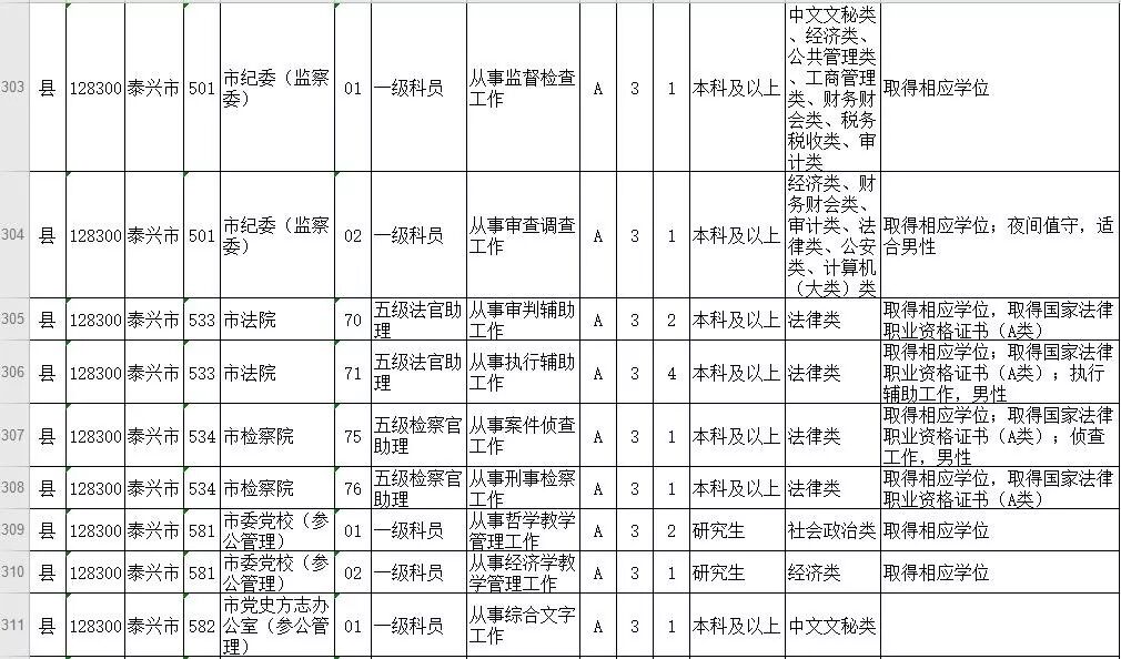 9.报考人民法院法官助理、人民检察院检察官助理职位(职位代码70~ 79)的人员还须具备《江苏省2020年考试录用法官助理检察官助理简章》规定的条件;