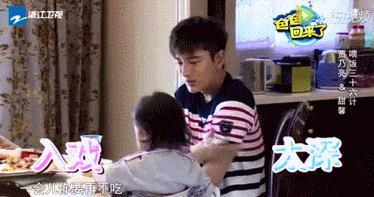 《爸爸回来了》里有一处,贾乃亮哄甜馨吃饭,她怎么都不肯。
