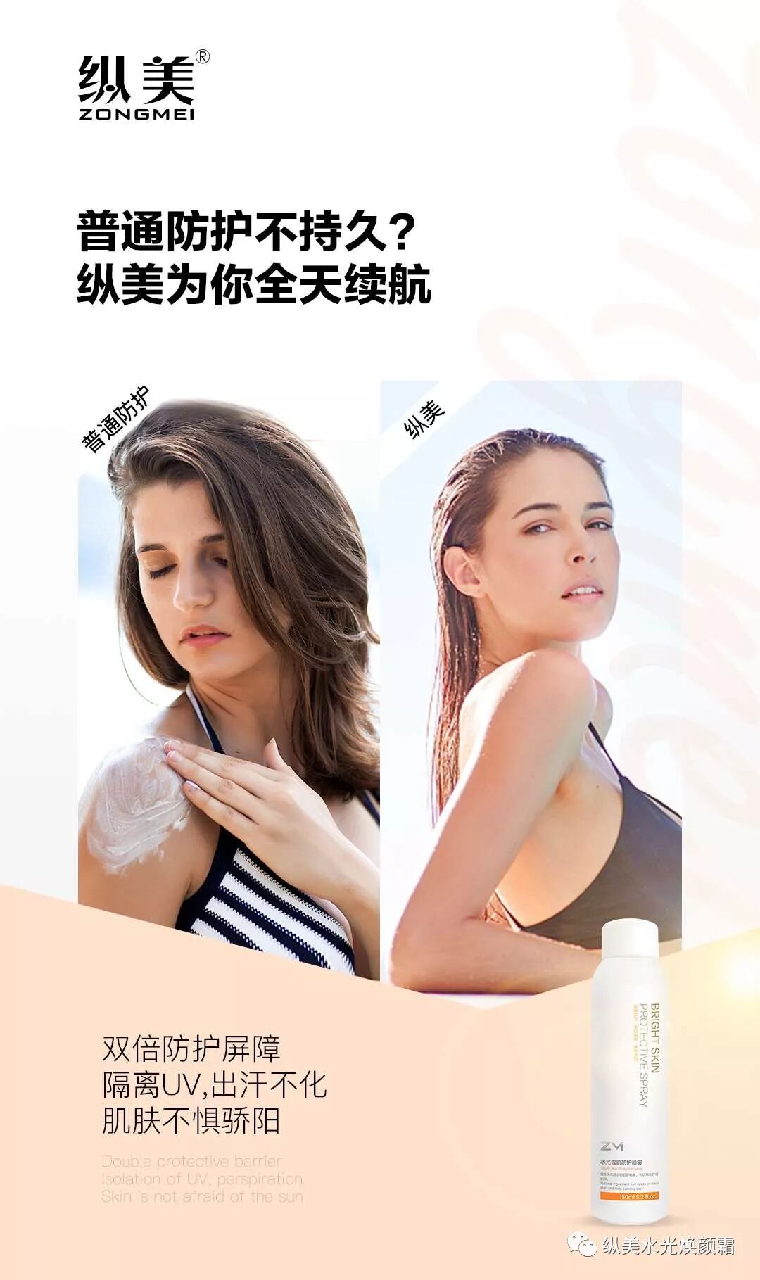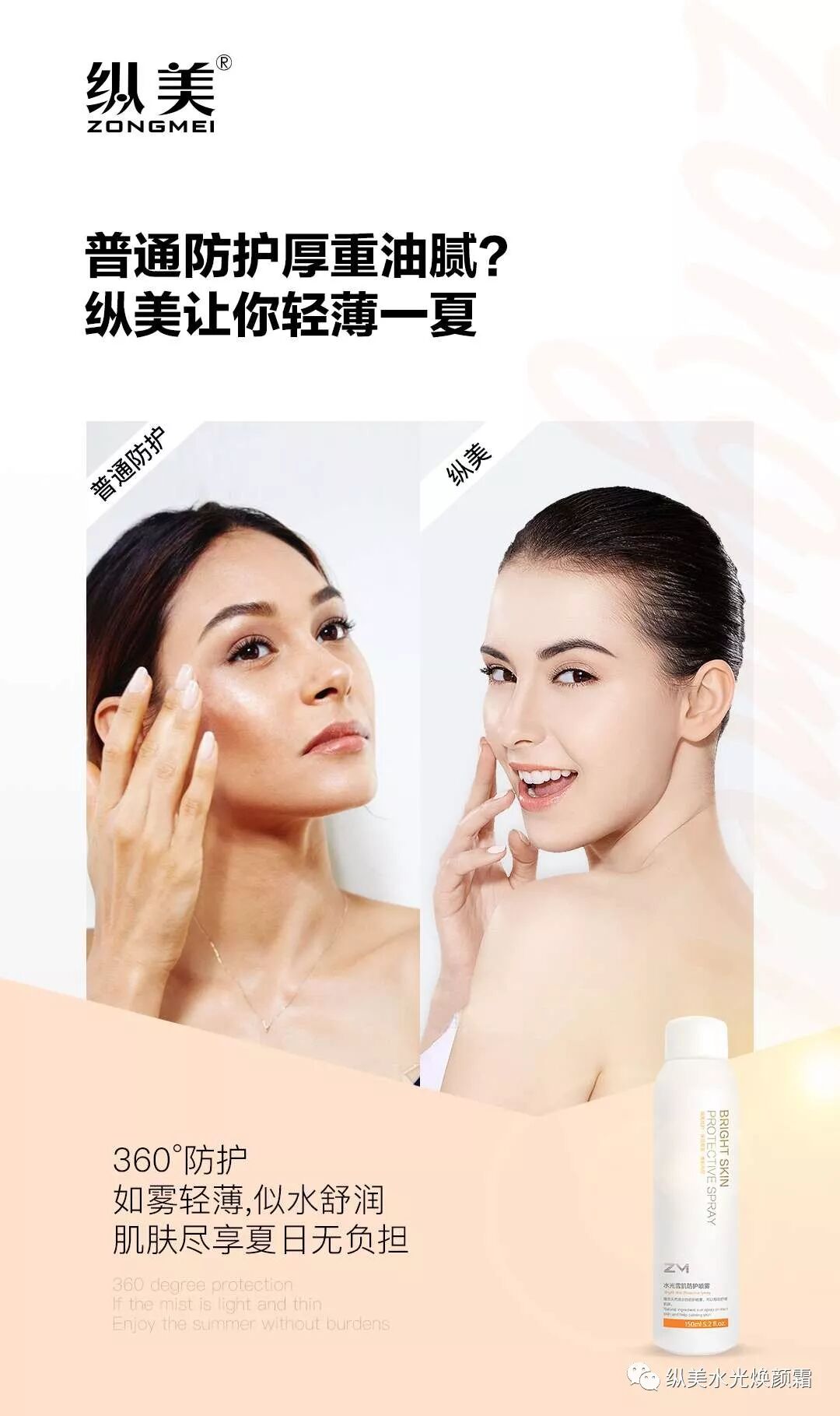 今年夏天你还需要带瓶瓶罐罐出门?还需要在脸上敷油腻的一层?你的防护霜还是只有防护的功能?那你就OUT了,纵美水光雪肌防护喷雾,6效合一,持久防护,喷一夏,就够了!