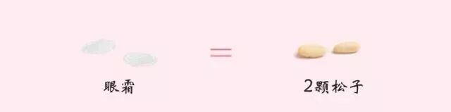 眼部皮肤极薄,几乎没有毛孔,对护肤品的吸收有限。如果过量使用,会引发脂肪粒等问题产生。2颗松子的用量,一边眼部各1颗。