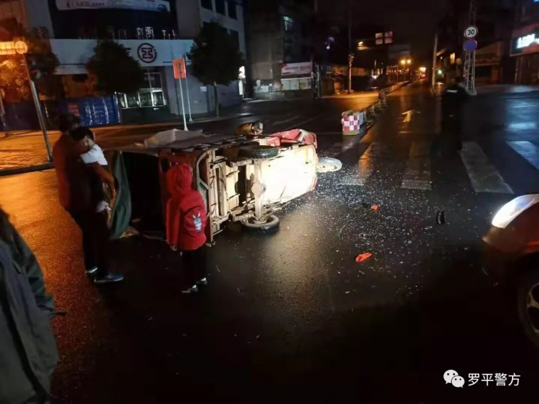家住曲靖罗平的李某由于孩子在家突发高烧,于是骑着三轮车载着妻子、一岁多、三岁多的小孩连夜到罗平就诊,孩子高烧不退,途经工商银行红绿灯处时,与一辆轿车发生碰撞,三轮车被撞翻在地。报警之后,民警当机立断,兵分两路,一组用警车迅速护送李某一家人先到医院,另外一组留下来保护现场等待交警的到来。