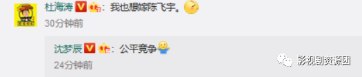 男友杜海涛留言,对沈梦辰在节目里“表白”陈飞宇吃飞醋“我也想嫁陈飞宇”沈梦辰看热闹不嫌事大,还表示“公平竞争”