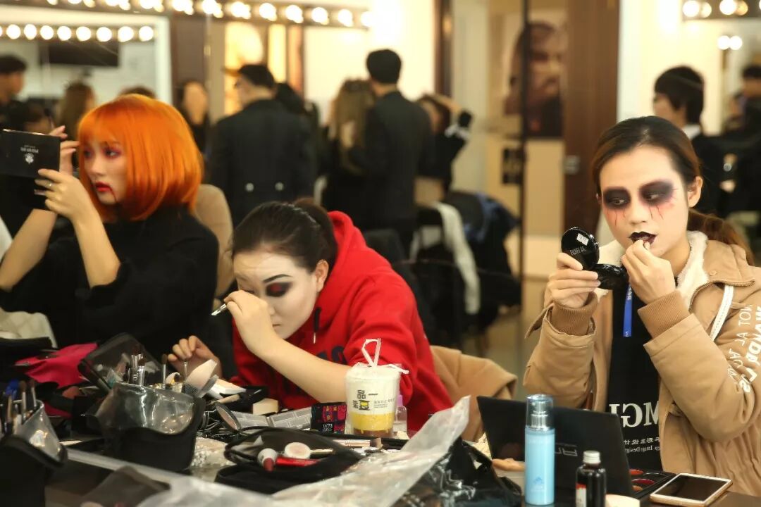 学员们在化妆间里,精心的准备万圣节狂欢Party的造型,可以打扮成自己想要成为的样子,放肆嗨的节日,想想就刺激!