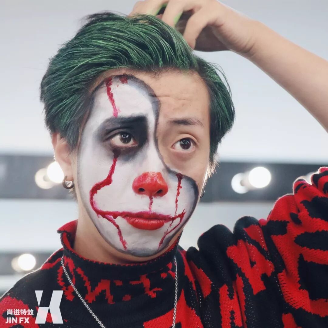 两位帅哥将不同的小丑元素运用到了妆容当中,邪恶又冷酷,一股奇怪的小丑恐惧在万圣节前开始席卷而来。