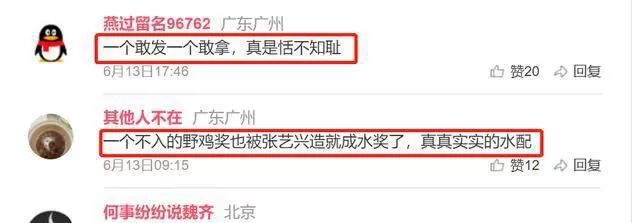 这个结果出来以后,张艺兴被骂惨了,网友说:“一个敢发,一个敢拿,真是恬不知耻!”“一个不入流的也即将,也被张艺兴造就成水奖了,真真实实的水配!”而张艺兴的粉丝,自然是维护张艺兴的。